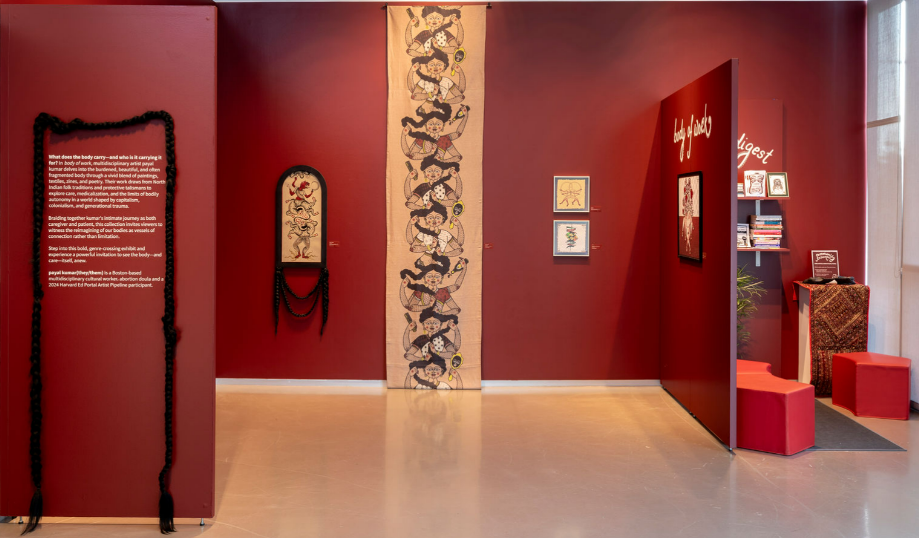 What does the body carry—and who is it carrying it for? In body of work, multidisciplinary artist payal kumar delves into the burdened, beautiful, and often fragmented body through a vivid blend of paintings, textiles, zines, and poetry. Their work draws from North Indian folk traditions and protective talismans to explore care, medicalization, and the limits of bodily autonomy in a world shaped by capitalism, colonialism, and generational trauma.